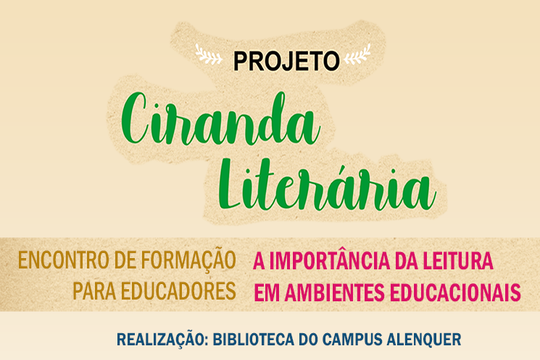 A UFOPA, Campus Alenquer por meio do Projeto de Extensão Ciranda Literária promove de 21 a 25/03/2022 das 19 às 21h o Encontro de Formação com professores das redes municipal, estadual e particular do município de Alenquer e comunidade acadêmica do Campus Alenquer com o tema: