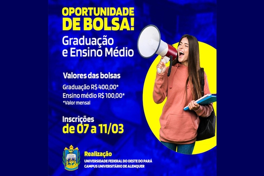 Você que está regularmente matriculado no curso de Bacharelado em Administração do Campus Alenquer/Ufopa ou é aluno do ensino médio em escolas públicas de Alenquer não perca essa oportunidade de integrar a equipe do Projeto de Ensino, Pesquisa e Extensão (PEEX), “Competências Transversais em Educação Financeira: uma perspectiva integradora”.