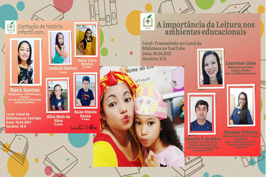 No dia 18 de abril comemora-se o Dia Nacional do Livro Infantil e para destacar a importância desse dia foi realizada uma live no dia 16/04/21 com o tema “A importância da leitura em ambientes educacionais”. Essa atividade aconteceu por meio do Projeto Sextou literário da Universidade Federal Rural da Amazônia (UFRA-Campus Capitão Poço) e Universidade Federal do Oeste do Pará (UFOPA). As ações foram pensadas por um grupo de bibliotecárias da UFRA- Campus Capitão Poço (Vanessa Baía e Gabriela Ribeiro) e UFOPA dos Campus Alenquer (Nara Santos), Óbidos (Laurimar Lima) e Oriximiná (Daniele Printes).